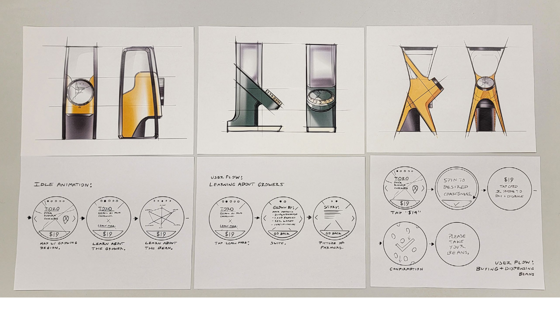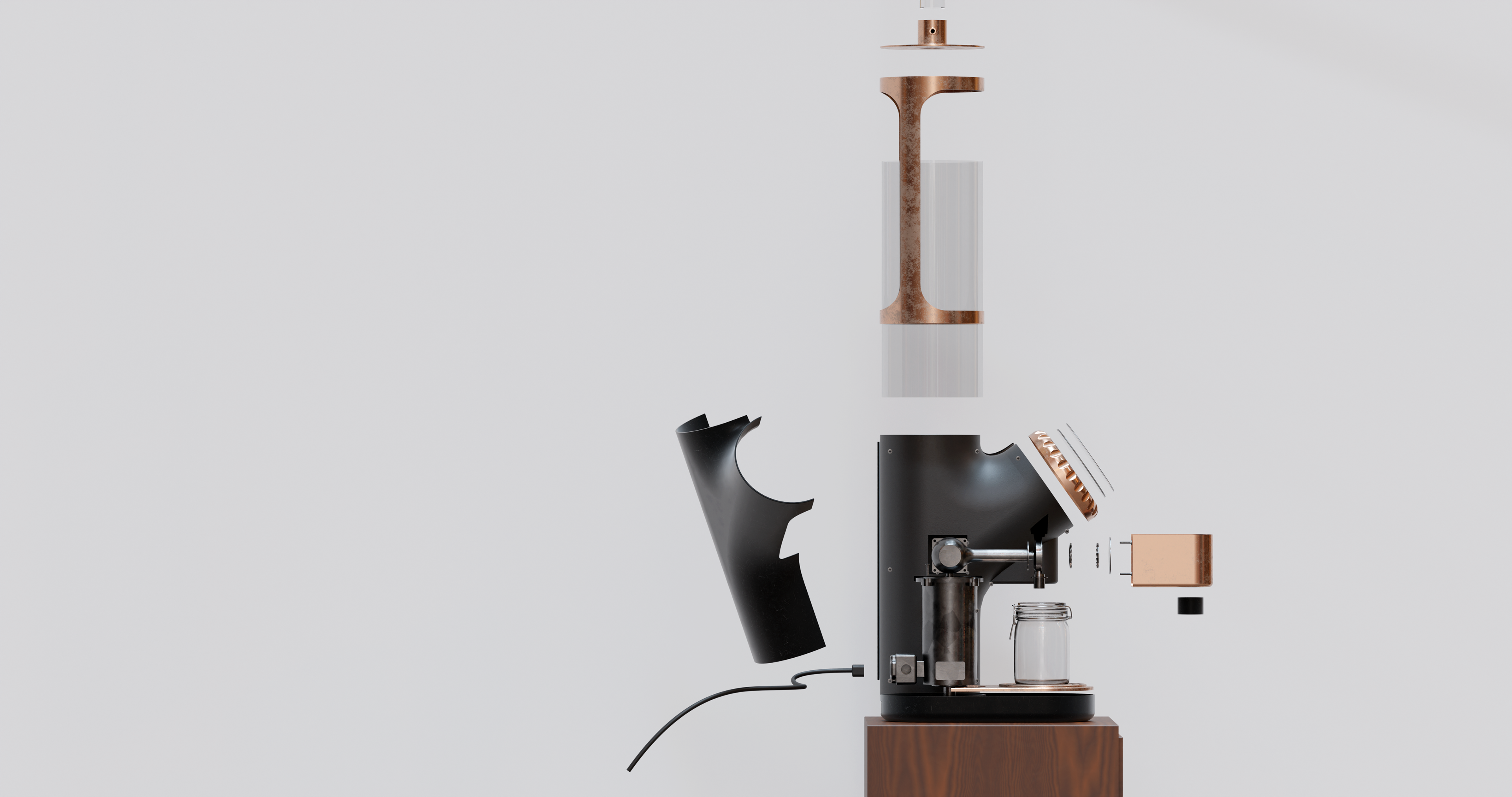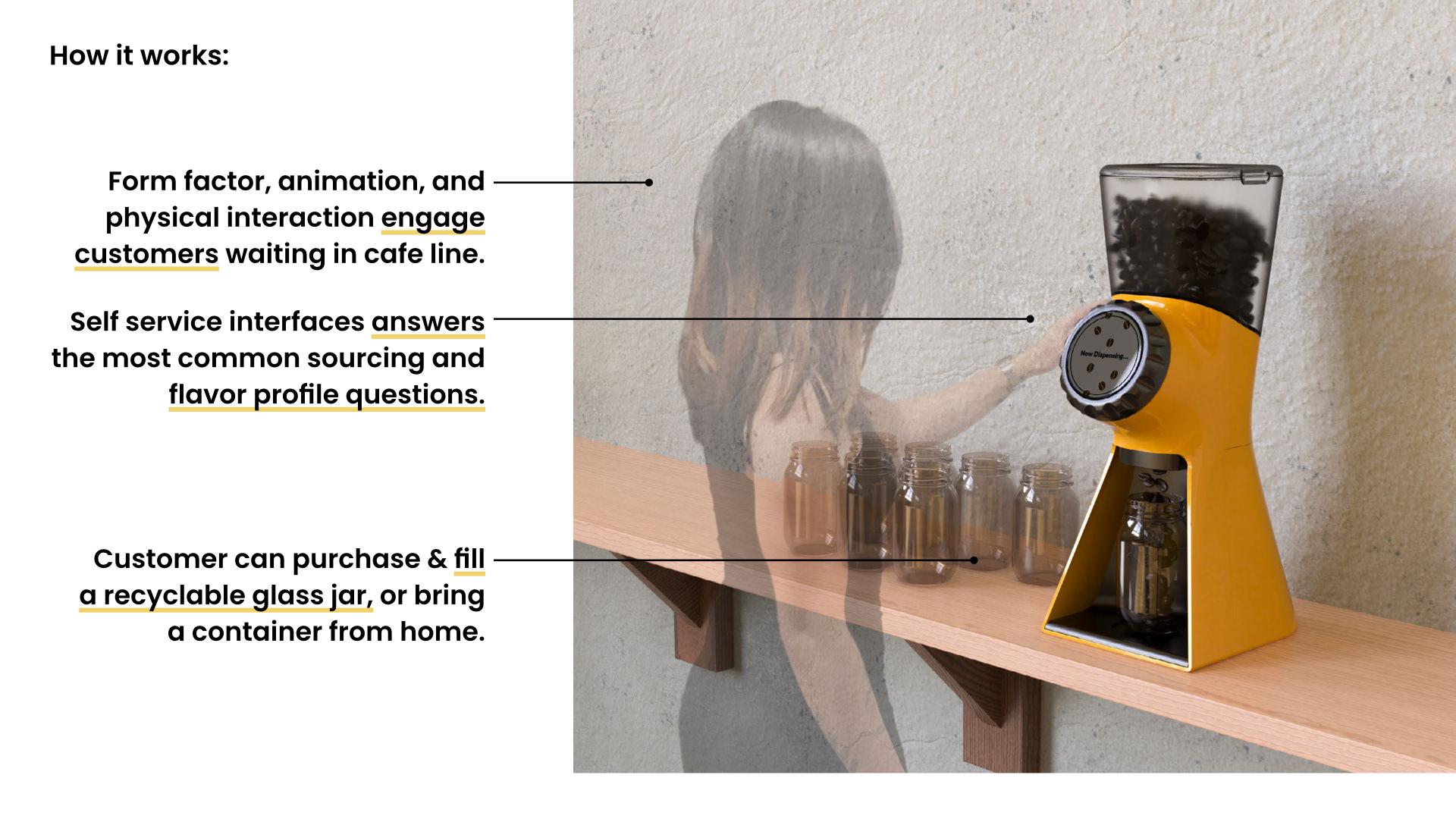 Pneumatic tube feeds beans into hopper (Automatic Refills).